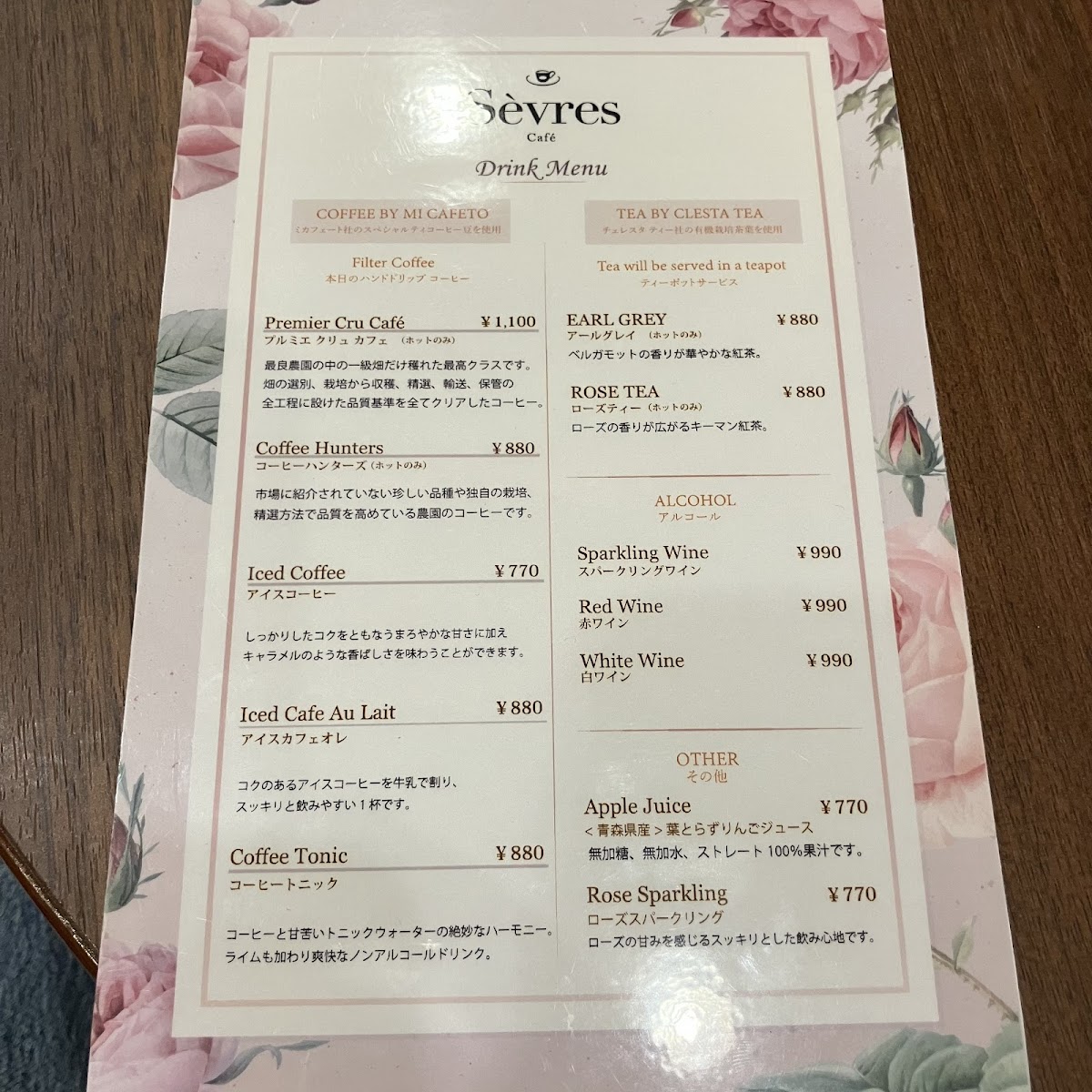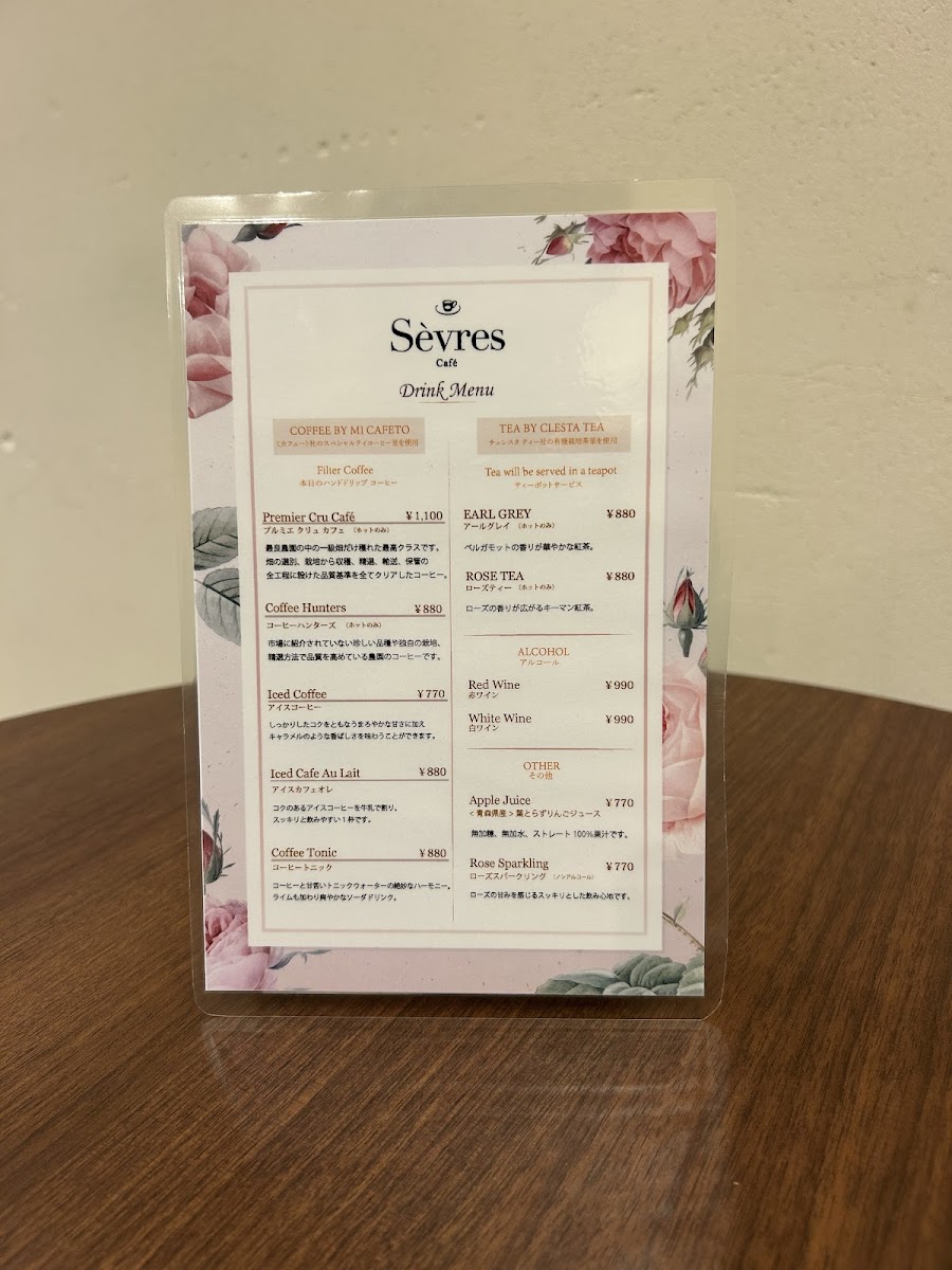 Sèvres Café Coffee shop in Omotesando Tokyo Menu